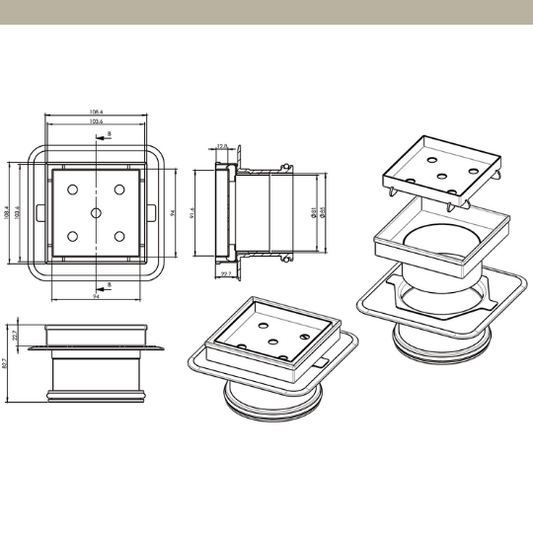 [ART] F/W Tile Insert SS316 Mega Square 110x110mm - 100mm Outlet