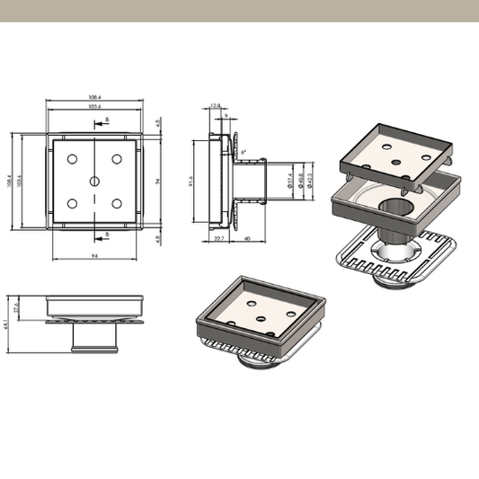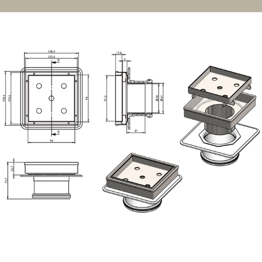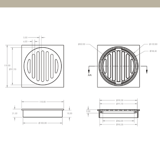 [ART] Standard 100mm Square Floor Waste Push In CP