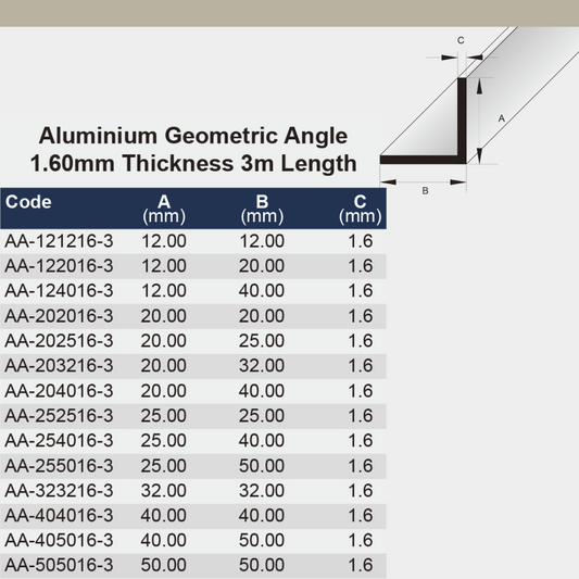 [BAT] 12 x 20 x 1.6 x 3000mm GEO Aluminium Angle