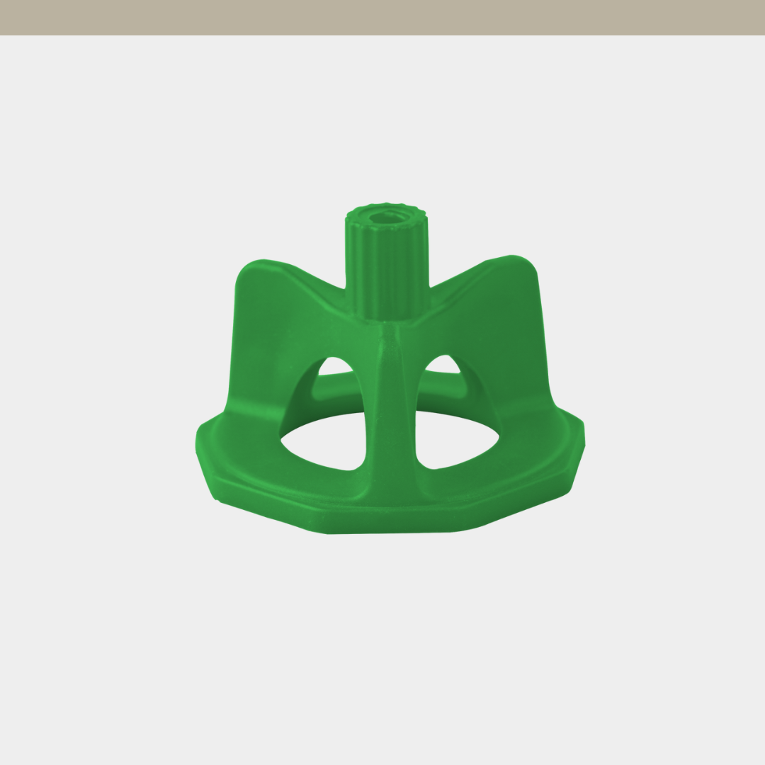 By making use of centripetal force in conjunction with its auto-rotation mechanism, Precise Levelling Systems Spin King offers accelerated tile installation. The Precise Levelling Systems Spin King Crowns can be tightened down easily with 1 hand, which is especially useful when installing large format tiles.